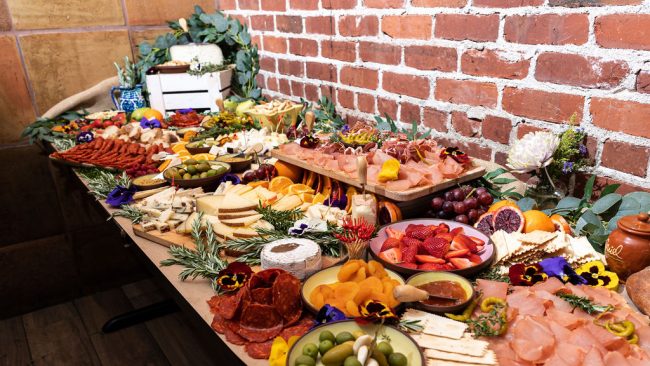 For the ultimate indulgence, upgrade your grazing table with a Jamón Serrano or Ibérico carving station. A master carver thinly slices this exquisite ham right before your guests, providing not just a taste of Spain’s finest but also an element of interactive entertainment. This luxurious addition is a perfect complement to any catering package, adding a touch of opulence and flair.
